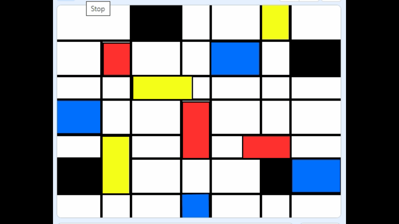 Cette autoformation permettra aux enseignants ou aux élèves de se familiariser avec plusieurs outils avec lesquels il est possible de réaliser des créations plastiques personnelles grâce à la programmation. En plus de vous présenter des outils, cette autoformation propose des liens entre le PFEQ en mathématique, en arts et avec plusieurs dimensions du développement de la compétence numérique. Vous pouvez observer, à droite, une oeuvre créée avec Scratch à la manière de Piet Mondrian.