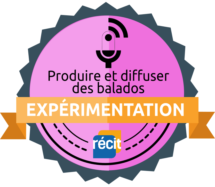 Le badge « Expérimentation » est émis à la personne apprenante qui enregistre un balado et en partage le lien dans la section Devoir.