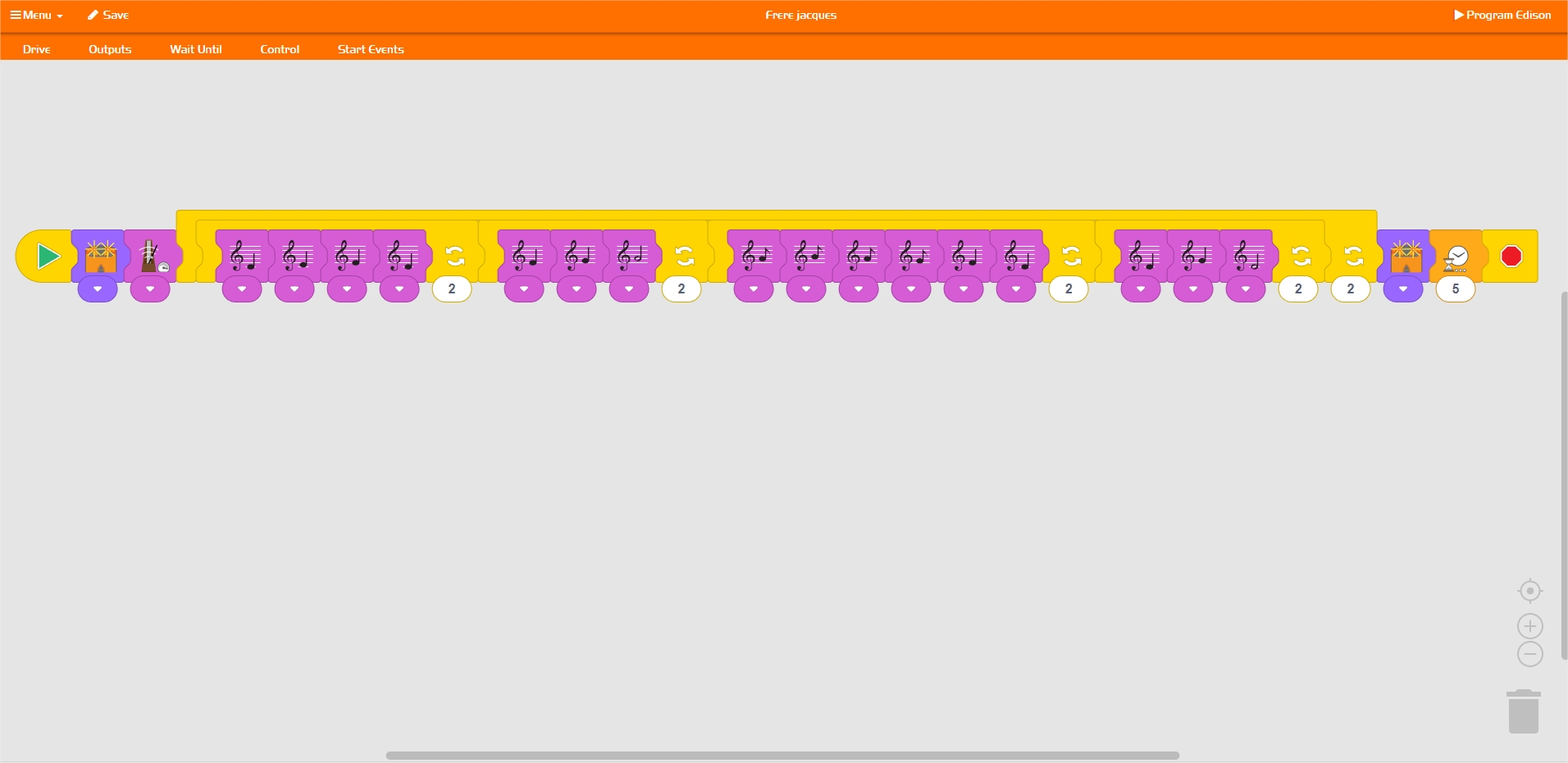 SOLUTION possible pour le code EdBlocks défi 2 - Frère Jacques