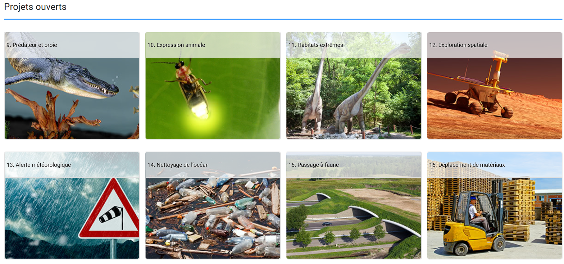 Dans l'application, les élèves ont accès aux les plans de construction et de programmation de tous les projets.