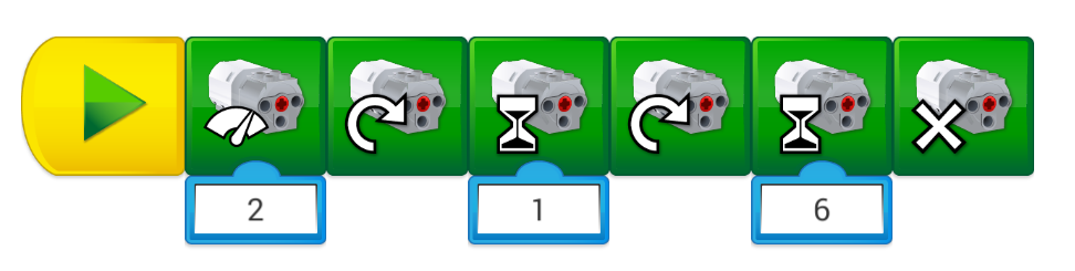Les équipes programment WeDo 2.0 selon l'opération attribuée à leur équipe en programmant les 2 déplacements un après l'autre.