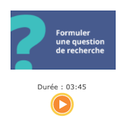 Nous vous invitons à visionner la vidéo Cerner un sujet de recherche : Formuler une question de recherche (Faire une recherche, ÇA S’APPREND !) qui vous permettra de mieux comprendre cette étape très importante.