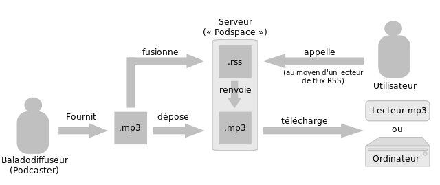 Source : Berthomet, Stéphane  (2006, janv.). Balado et baladodiffusion [site Web]. Consulté le 04 avril 2022.