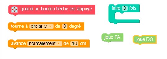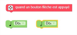 En plus des blocs joue, il existe des blocs qui permettent de choisir le temps des notes et qui offrent une amplitude de deux gammes. À l’aide de ces blocs, programmez Thymio afin qu’il puisse jouer les 11 premières notes de Au Clair de la lune. Vous trouverez ci-dessous le lien vers une image qui vous permettra d’avoir les informations sur les 11 premières notes.
