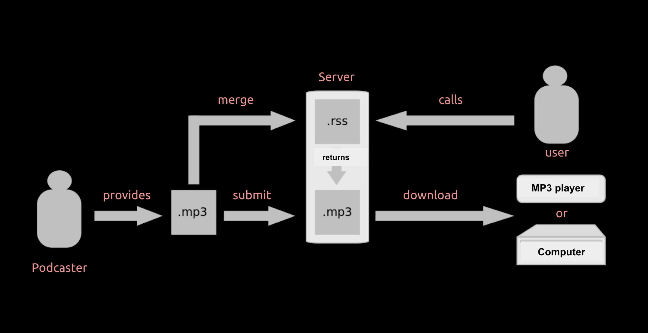 "A podcast is an audio or video file that can be downloaded by Internet users. The file can include a video conference, report, radio broadcast, etc."