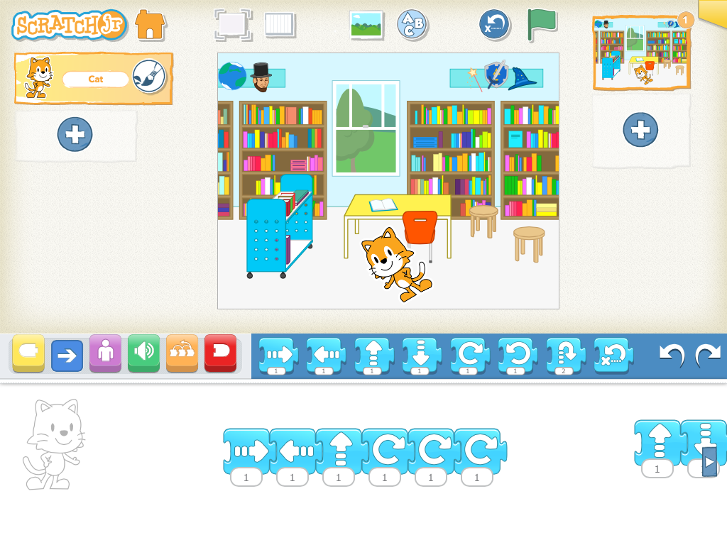 L’application tombe à point nommée et répond à un double intérêt : d’une part, l’utilisation de tablettes avec une application native donc beaucoup mieux intégrée qu’une plateforme web; d’autre part, la possibilité pour de très jeunes enfants de s’initier au code grâce à l’image. En effet, un enfant ne sachant pas lire n’aura aucune difficulté à prendre en mains ScratchJr.