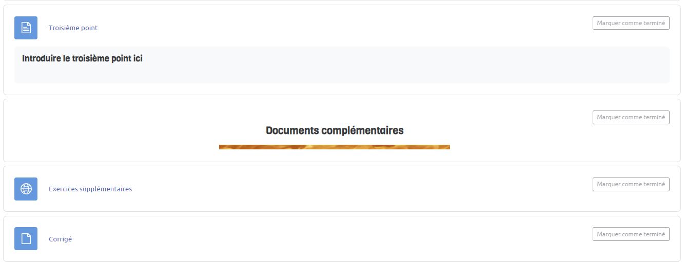 - Ajouter un titre de section ou une zone texte et média (étiquette) dans la page du cours