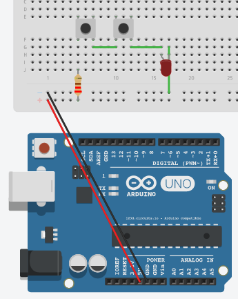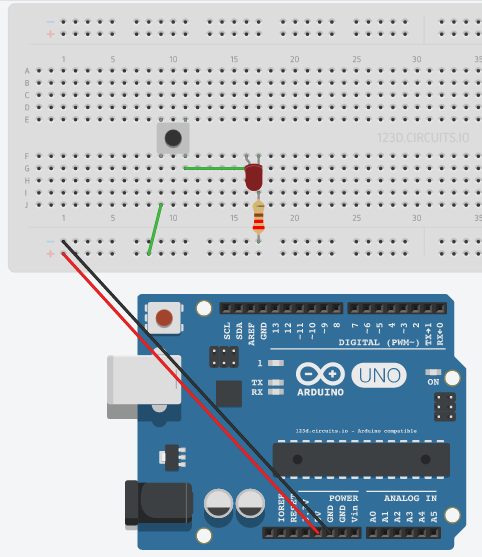 Note : On utilise ici le courant (une différence de potentiel de 5V) fourni par le port USB (on doit donc connecter le fil USB de l’ordinateur à la carte Arduino) de l’ordinateur pour alimenter notre circuit.
