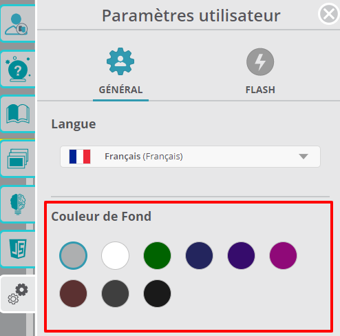 Dans l'onglet Programme, juste sous les paramètres pour la Langue, cliquez tout simplement sur une des couleurs offertes dans Couleur de fond