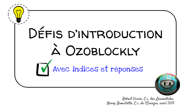 Voici quelques défis pour introduire la programmation à Ozoblockly en classe: fiche de défis et diaporama.
