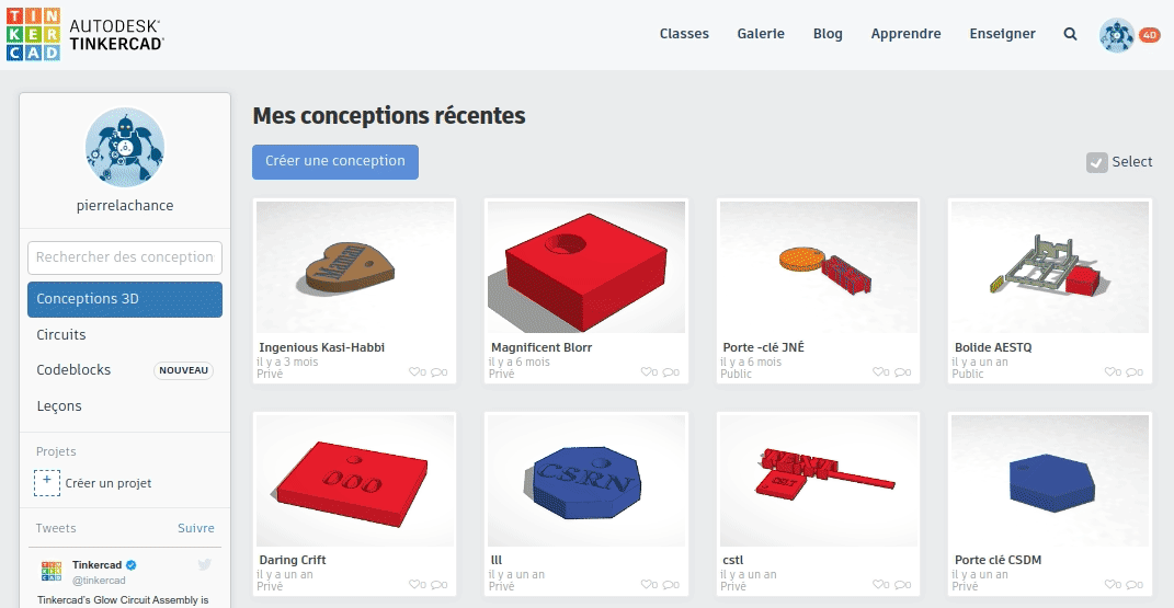 - Un compte est nécessaire pour utiliser Tinkercad.