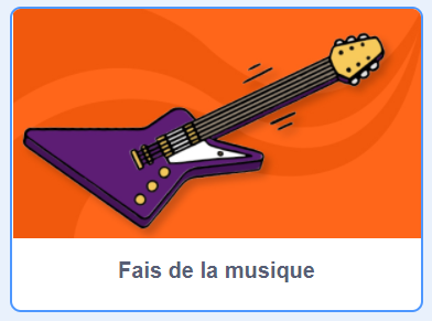 Plusieurs défis peuvent être réalisés en lien avec la musique. Dans l'autoformation « Premiers pas avec Makey Makey », dans la section « Premiers défis », ces programmes sont proposés : jouer un son, jouer de la batterie, enregistrer un son personnel. Il y a aussi quelques défis dans la section « Exemples de projets » que vous pouvez réaliser tels que fabriquer un piano.Fiche « Notes de musique avec Scratch ».