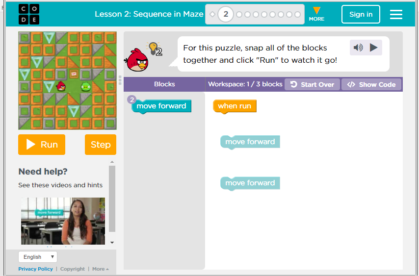Code.org est un organisme sans but lucratif dédié à accroître l'accès à l'informatique dans les écoles et augmenter la participation des femmes et des minorités peu représentées. La plateforme offre la possibilité de choisir la langue, dont le français. Un catalogue de cours impressionnant est disponible.